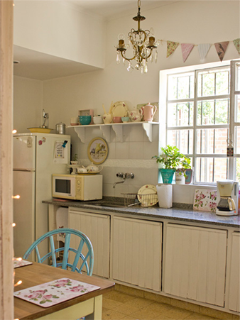 O cantinho está assim recheado (muito mesmo) de ideias bacanas. Sempre que acabo diante de uma decoração no estilo, meu primeiro olhar recaí sobre as louças. Amo observá-las em qualquer cozinha, e, nesta aqui, é quase impossível não se apaixonar pelas peças delicadas e românticas! Elas ficam expostas numa prateleira acima da pia e não podia mesmo haver lugar melhor!