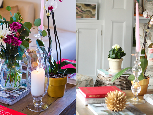 Mas, deixando de divagar e partindo para o que interessa, a sala de estar de hoje ousa nos objetos diferentes e contrastantes para criar um ambiente aconchegante e visualmente elegante. Outro detalhe importante e que chamou bastante a minha atenção foi a utilização de livros e revista para compor a decor: na mesinha de centro, na estante e em cima do cesto que fica entre as duas poltronas. Eu curti, e vocês?