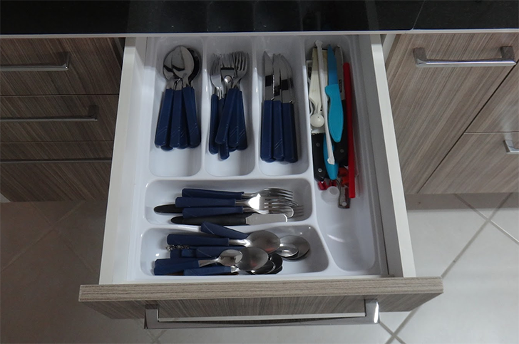 12. Coloque os talheres em uma gaveta com divisórias e separe os garfos das facas e colheres.