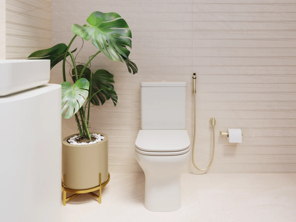 Outro ponto que merece destaque é a compatibilidade entre os elementos do sanitário. Assentos, duchas higiênicas e sistemas de descarga devem ser pensados em conjunto, tanto para garantir o desempenho ideal quanto para manter uma linguagem visual coerente no espaço. Escolhas bem coordenadas resultam em banheiros mais elegantes, eficientes e confortáveis.
